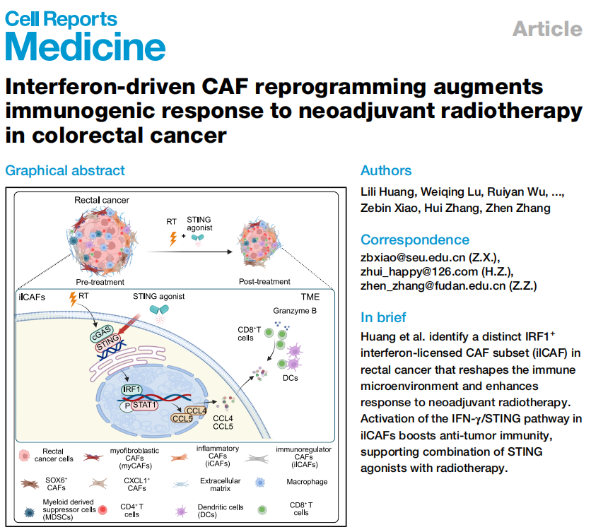 恭喜复旦大学附属肿瘤医院章真教授团队研究成果《Interferon-driven CAF reprogramming augments immunogenic response to neoadjuvant radiotherapy in colorectal cancer》在《Cell Reports Medicine》发表,研究中使用锐视科技多模态图像引导的精准放疗系统(SHARP 1000)。