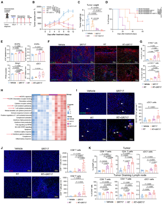 综上,这些数据证实:STING激动剂可通过激活STING/STAT1信号通路、富集ilCAF及募集抗肿瘤免疫细胞,逆转放射抵抗性肿瘤,使其对放疗敏感。