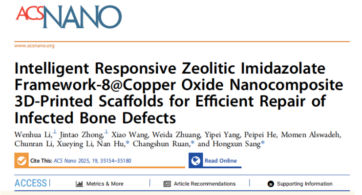《客户论文精选》|智能响应型 ZIF-8@氧化铜纳米复合三维打印支架用于高效修复感染性骨缺损