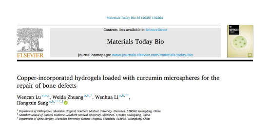 《客户论文精选》|载姜黄素微球的掺铜水凝胶用于骨缺损修复